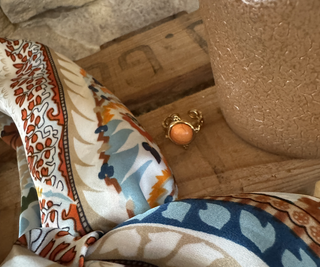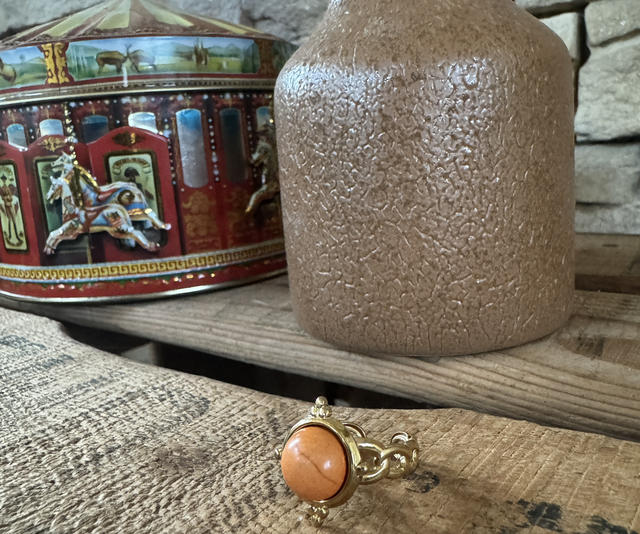 Élégante et singulière, cette bague en acier inoxydable doré met en valeur une pierre orangée au charme solaire. Son design travaillé et ses finitions délicates en font une pièce qui attire le regard tout en restant raffinée. Parfaite pour donner du caractère à tes tenues.