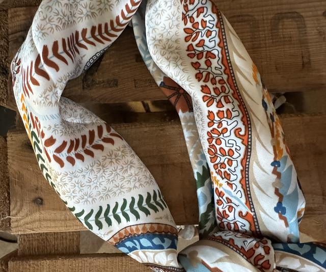 Élégant et raffiné, ce carré soyeux aux motifs bohème illumine ton look d’une touche de couleur et de douceur. Sa matière fluide et légère apporte confort et chic au quotidien, tout en restant facile à porter et à associer.