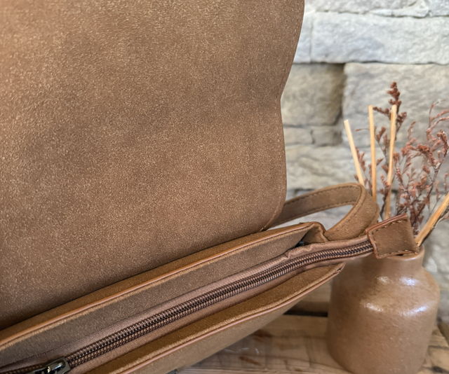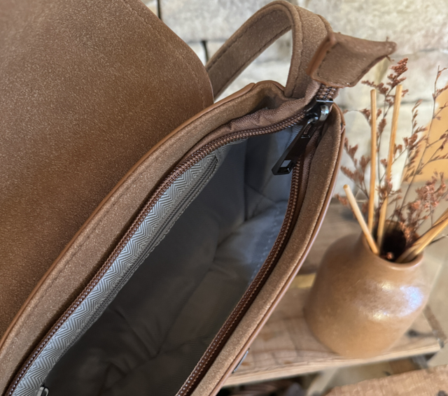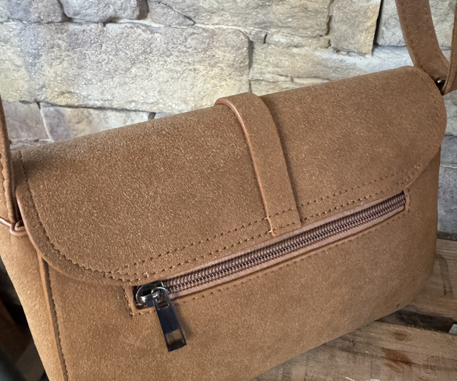 Élégant et pratique, ce sac bandoulière en suédine camel est le compagnon idéal pour allier style et confort au quotidien. Son format te permet d’emporter l’essentiel, tout en restant chic et tendance.